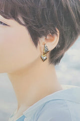 These elegant earrings feature a diagonally spreading shape and three-dimensional waves that create a line of light.