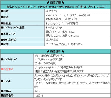 Product name: Jeunet Diamond Earrings 0.13ct K18YG Pt900 Combination Dangling Brand: Jeunet