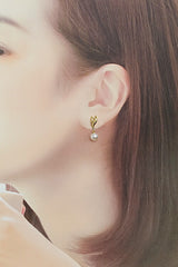These elegant earrings from Mikimoto feature a botanical leaf motif and softly shining Akoya pearls.