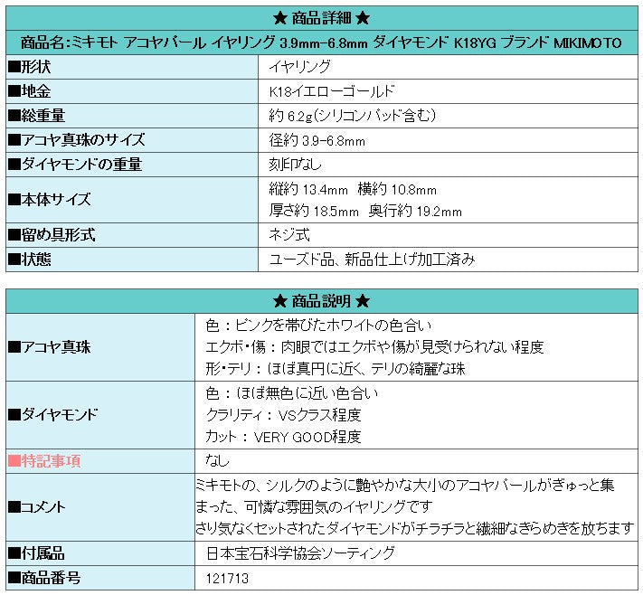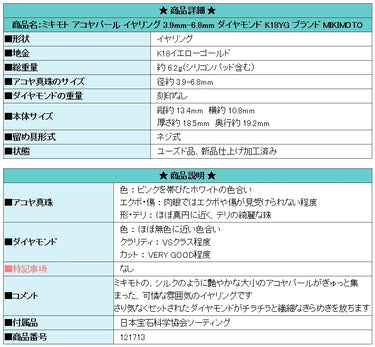 Product name: MIKIMOTO Akoya pearl earrings 3.9mm-6.8mm diamond K18YG Brand MIKIMOTO