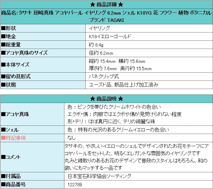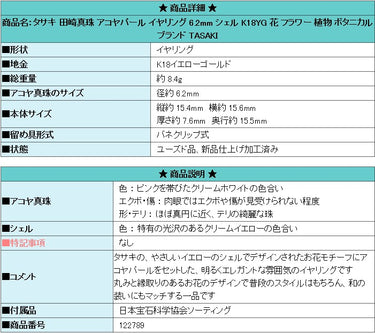 Product name: TASAKI Akoya pearl earrings 6.2mm shell K18YG flower plant botanical brand TASAKI