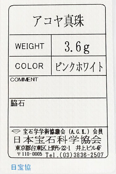 アコヤ真珠 色:ピンクを帯びたクリームホワイトの色合い