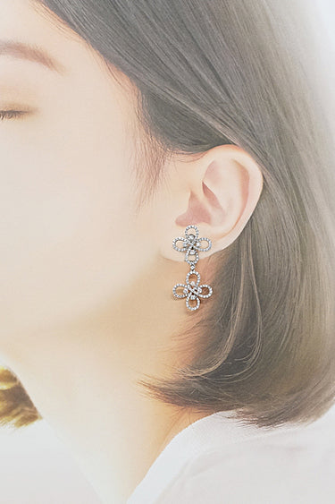Diamond earrings, K18 white gold, flower, plant, botanical [Used] [124117]