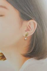 MIKIMOTO Akoya pearl earrings, K18 yellow gold, MIKIMOTO feather [Used] [125071]