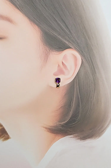 コメント タサキの、深みのある色合いのアメジストが魅力的なイヤリングです。洗練されたシンプルなデザインなので、デイリーユースにもおすすめです