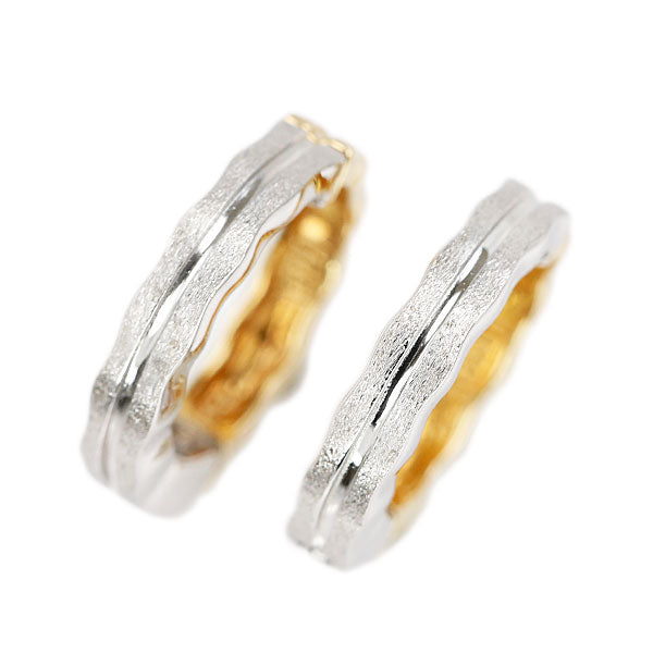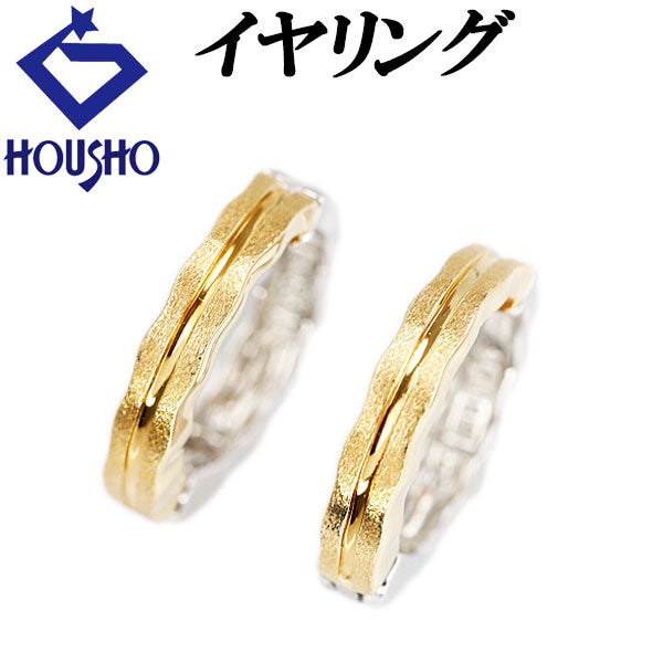 イヤリング K18イエローゴールド K18ホワイトゴールド ピアリング リバーシブル フープ 地金のみ 石なし 梨地 ツヤ消し マット【中古】【903510】