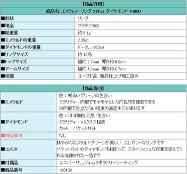 Emerald ring 2.05ct diamond Pt900 | Diamond, gorgeous, elegant, cute, stylish [Used] [SH120109]