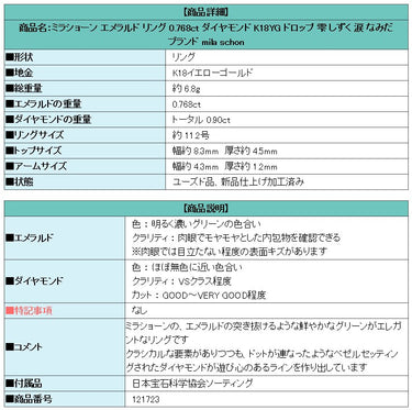 Product name: Mila Schon emerald ring 0.768ct diamond K18YG drop teardrop brand mila schon