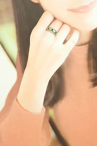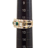 Aquascutum emerald ring, diamond, K18 yellow gold, wide and thick [Used] [900051]
