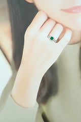 コメント 濃いグリーンカラーが美しい、エレガントなエメラルドのリングです。取り巻きとアームに隙間なくセットされたダイヤモンドが、様々な角度から眩い輝きを放ちます。