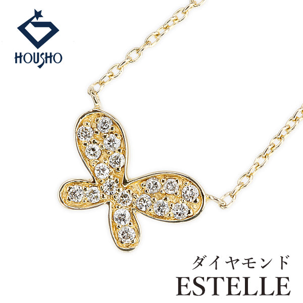 エステール ダイヤモンド ネックレス K18イエローゴールド ESTELLE ちょうちょ 蝶 チョウ バタフライ パピヨン 昆虫 動物 アニマル【中古】【904696】