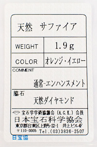 サファイア 色:濃い赤を帯びたオレンジ、イエローの色合い