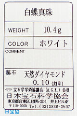 白蝶真珠(南洋真珠) 色:若干ピンクを帯びたホワイトの色合い