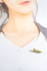 Tasaki Tasaki Pearl Freshwater Pearl Brooch Diamond K18 Yellow Gold TASAKI Leaf Plant Botanical Pear Texture Matte [Used] [124111]