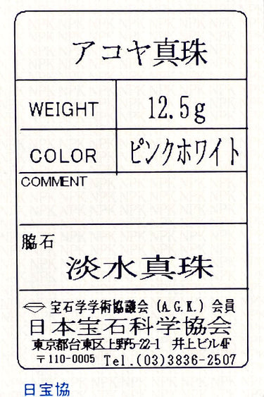 アコヤ真珠 色:強くピンクを帯びたクリームホワイトの色合い
