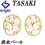 商品名 タサキ 田崎真珠 淡水真珠 イヤリング K18イエローゴールド TASAKI 葉 リーフ 植物 ボタニカル 透かし 梨地 マット ツヤ消し