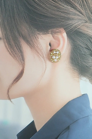 コメント タサキの、絵画のようなフレームの中に、艶やかに実った果実のような淡水パールが豊かにあしらわれた上品なイヤリングです。やや大ぶりですが、透かしのデザインなので軽やかな見た目でお召いただけます。