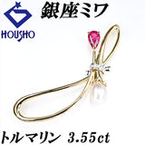 GINZA MIWA Pink Tourmaline Brooch with Diamond, White South Sea Pearl, and 18K Yellow Gold (Pt900). GINZA MIWA Drop, Droplet, Tear, Ribbon. [Pre-owned] [Product Number: 901935]