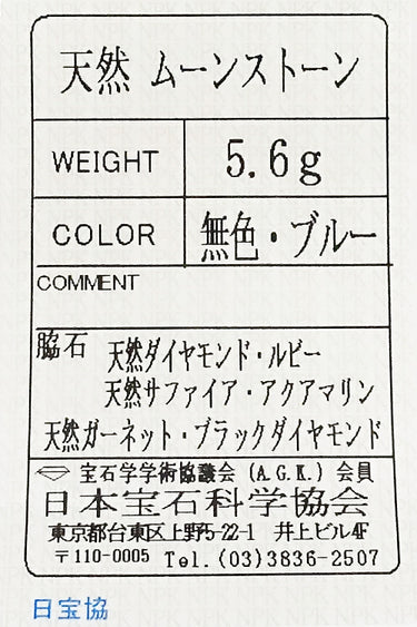 マルチカラーストーン 種類:ムーンストーン・ルビー・サファイア・アクアマリン・ガーネット