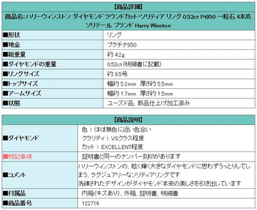 Product name: Harry Winston Diamond Round Cut Solitaire Ring 0.53ct Pt950 Single Stone 4 Prong Solitaire Brand Harry Winston