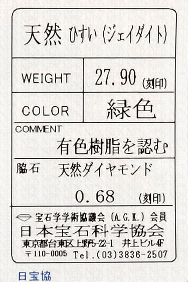 気になることがあったので質問したのですが、すぐ返信があり購入前から安心感がありました。配送も早く、説明通り、鑑定書も付いていて安心しました。今後も入荷をチェックして気にいったものがあれば購入したいと思いました。