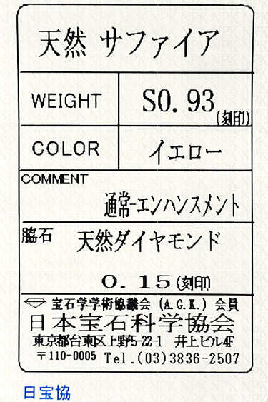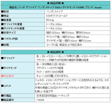 Jeunet Sapphire Pendant Top 0.93ct Diamond K18WG Brand Jeunet | 18K Yellow Sapphire Daily Use Elegant Cute Stylish [Used] [SH119208]