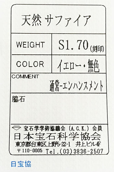 Jeunet Sapphire Pendant Top 1.70ct K18WG Twist Gradient Mystery Setting | 18K Yellow Sapphire Daily Use Elegant Cute Stylish [Used] [SH119756]