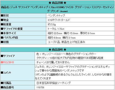 Product name: Jeunet Sapphire Pendant Top 1.70ct K18WG Twist Gradient Mystery Setting Brand: Jeunet