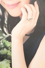 コメント タサキの、洞窟から差し込む幻想的な光を表現した、スタイリッシュな雰囲気のムーランリングです。型にとらわれないユニークなデザインの中で、アコヤパールの優美な存在感が際立ちます。