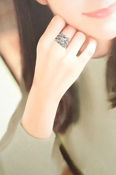 BVLGARI Diamond Lucia Ring, K18 White Gold, BVLGARI, 3-row style, thick, wide, openwork [Used] [900677]