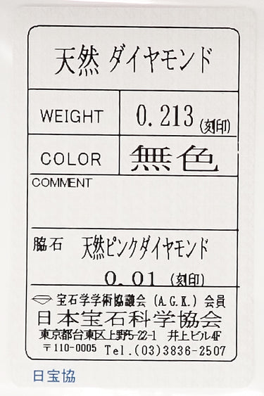ダイヤモンド 色:ほぼ無色に近い色合い