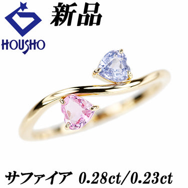 コメント ピンクとブルーのバイカラーのハート型のサファイアに、イエローゴールドのアームが可愛らしく上品な雰囲気のリングです。ウェーブがかった細身のアームでカジュアルにお楽しみいただける一品です。