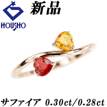 Sapphire Ring, K18 Pink Gold, New, Heart, Wave, Delicate, Thin [New] [900982]