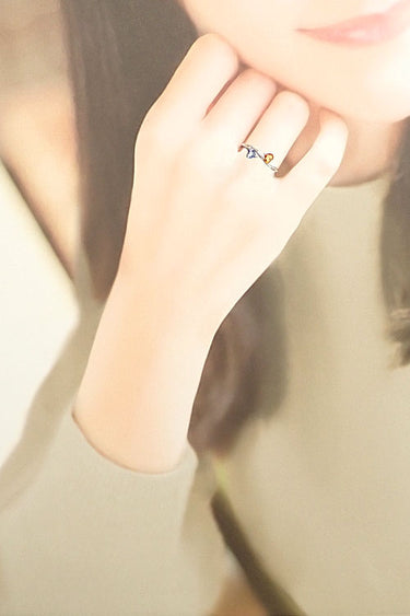 コメント ハートシェイプのサファイアをウエーブアームに沿ってころんとセットした、ユニークでラブリーなリングです。華奢なデザインですが、サファイアの寒色と暖色のコントラストカラーが目をひきつけます。