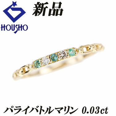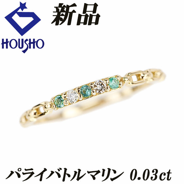 商品名 パライバトルマリン チェーン 細め 華奢 透かし リング ダイヤモンド K18イエローゴールド 新品