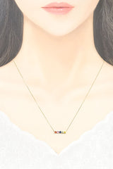 コメント 5色のカラフルなサファイアが一列にセットされた、華やかながら落ち着いた雰囲気のネックレスです。細めのチェーンなのでカジュアルにお召いただけます。