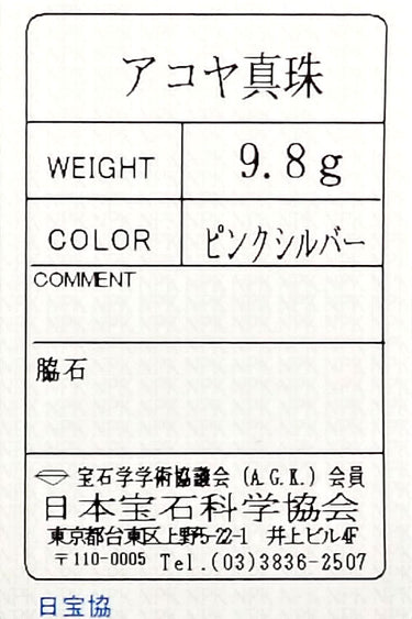 アコヤ真珠 色:クリームホワイト、ややシルバーを感じるホワイトの色合い
