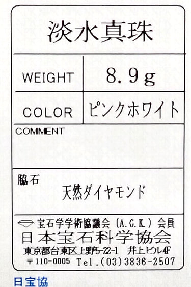 アコヤ真珠 色:ピンクを強く帯びたクリームホワイトの色合い