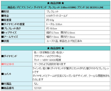 Product name: De Beers Line Diamond Bracelet 3.00ct K18WG Brand: DE BEERS LINE