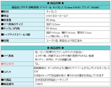 Product name: TASAKI Mabe Pearl Necklace 12.3mm K18YG Brand: TASAKI