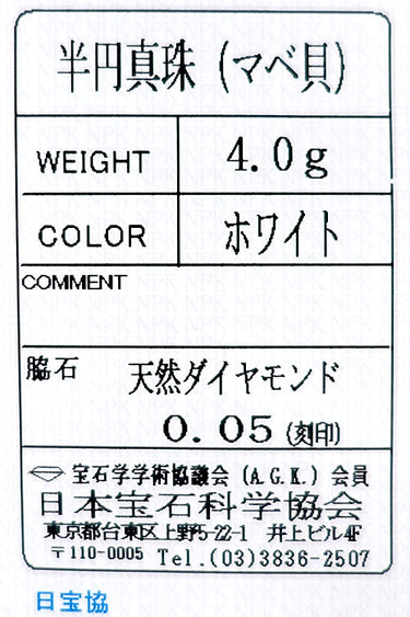 Product name: TASAKI Mabe Pearl Pendant Top Diamond K18WG Brand TASAKI