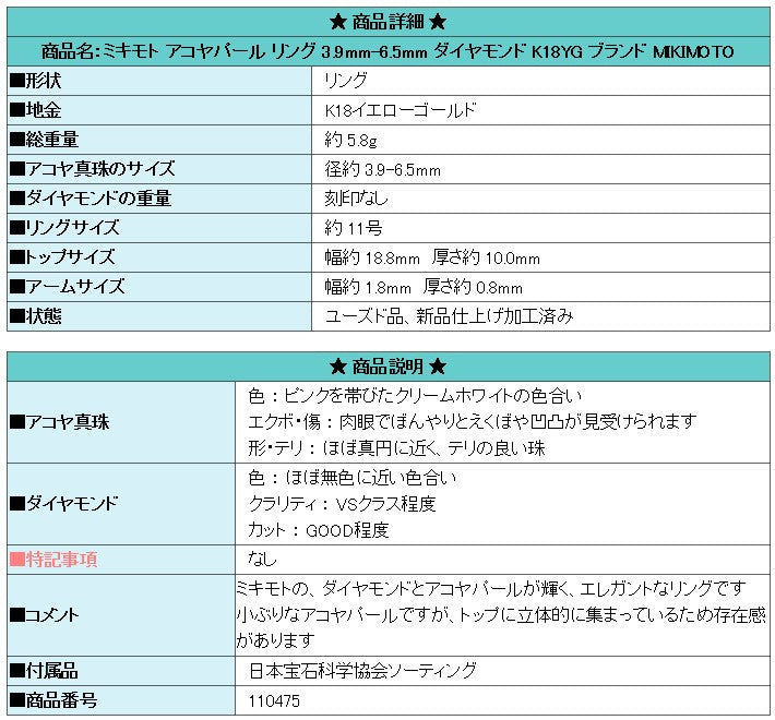 Product name: MIKIMOTO Akoya pearl ring 3.9mm-6.5mm diamond K18YG Brand MIKIMOTO