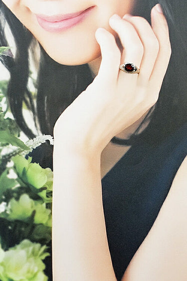 This ring from Mitsukoshi features a calm red rhodolite garnet, giving it an elegant and mature feel.