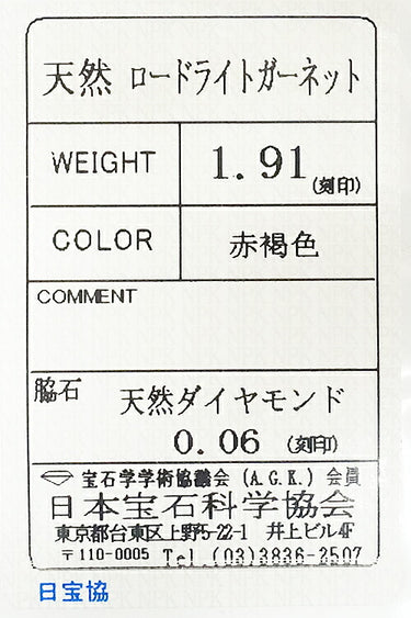 Product name: Mitsukoshi Rhodolite Garnet Ring 1.91ct Diamond Pt900 Brand MITSUKOSHI