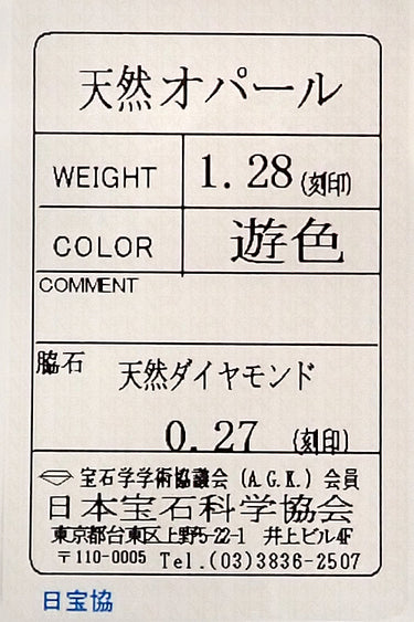 オパール 色:半透明のホワイトの地色にオレンジ・イエロー・ブルー・グリーンの斑のある遊色
