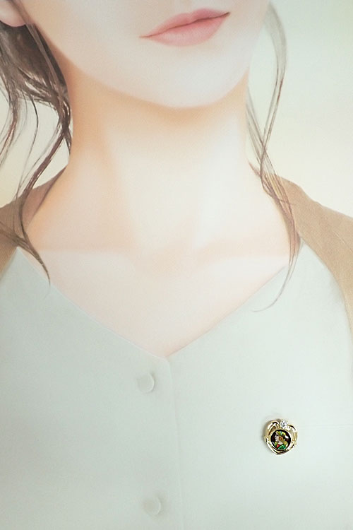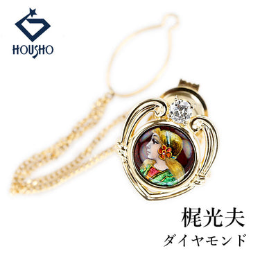 商品名 梶光夫 ダイヤモンド ブローチ K18イエローゴールド Pt900 MITSUO KAJI クリスティーヌ・シェロン 作家 デザイナー エナメル 七宝 女性 横顔 透かし ハート