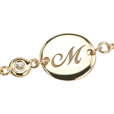 Pre-owned 18K Yellow Gold Diamond Bracelet with Initial "M" Smile Design, Double Chain and Single Stone. [Product Number: 902184]