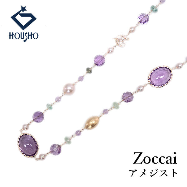 商品名 ゾッカイ 淡水真珠 ネックレス マルチカラーストーン ダイヤモンド K18ピンクゴールド Zoccai ロング 梨地 ツヤ消し マット