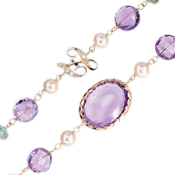 ゾッカイ 淡水真珠 ネックレス マルチカラーストーン ダイヤモンド K18ピンクゴールド Zoccai ロング 梨地 ツヤ消し マット【中古】【905711】
