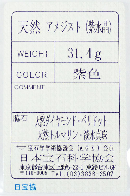 特記事項 上記は中央のアメジスト1石のサイズです。目立たない程度の地金傷があります。